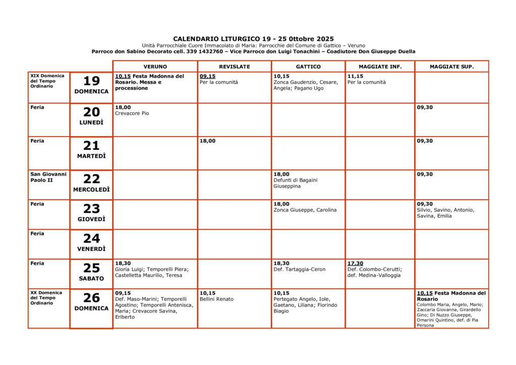 XXX DOMENICA DEL TEMPO ORDINARIO – 26 ottobre 2025 Leggi tutto »